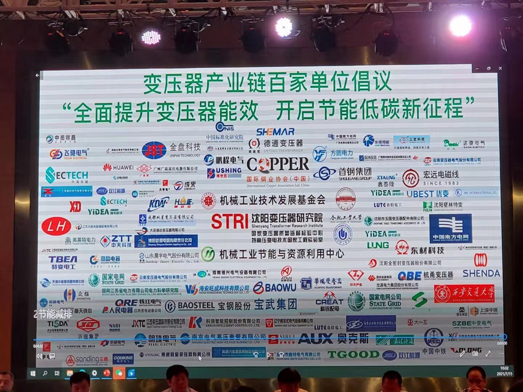 三百多位節(jié)能專家和用能單位代表參加了本次會議,因疫情影響本該于5月20日召開的會議延期至今日,又因部分地區(qū)出現新的新冠疫情而縮小參會人員規(guī)模。 以“全面提升變壓器能效,開啟節(jié)能低碳新征程”為主旨演講,發(fā)起全面提升變壓器能效的行動倡議,“工信部綠色制造系統(tǒng)集成供應商落實變壓器能效提升的舉措”,“電網企業(yè)落實變壓器能效提升的舉措”,“變壓器材料供應企業(yè)落實變壓器能效提升的舉措”以及“變壓器能效提升標準研討和技術經驗交流”等,為落實工業(yè)和信息化部、市場監(jiān)管總局、國家能源局聯合印發(fā)的《變壓器能效提升計劃(2021-2023年)》(工信廳聯節(jié)(2020)69)精神,加快高效節(jié)能變壓器生產和推廣應用,提升能源利用效率,推動產業(yè)鏈優(yōu)化升級,促進制造業(yè)節(jié)能與綠色發(fā)展,共同研討電力節(jié)能環(huán)保技術,探討如何推廣、應用新版的電力變壓器能效標準,推動電力行業(yè)朝著綠色低碳和高質量方向發(fā)展,助力“雙碳”目標早日實現。