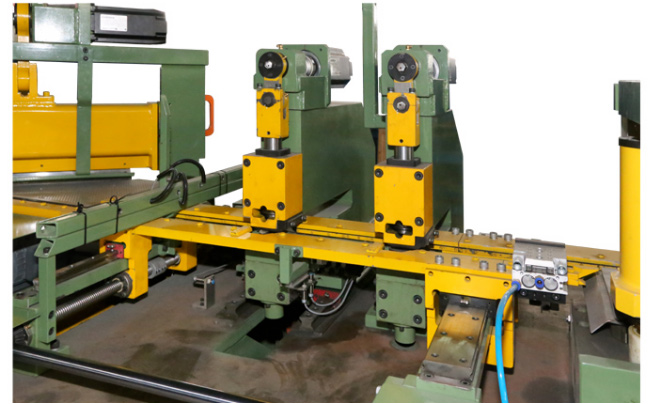 沖孔沖床 沖孔沖床主要由床身、導(dǎo)柱、導(dǎo)套、上下沖模、伺服電機(jī)、上沖模高度調(diào)整部件組成。沖孔沖床用于帶孔片型沖孔,孔大小及位置尺寸精確符合定位要求。 沖孔直徑:8~30mm; 選配功能:附加一個沖孔工位實現(xiàn)沖孔位置橫向調(diào)整功能。