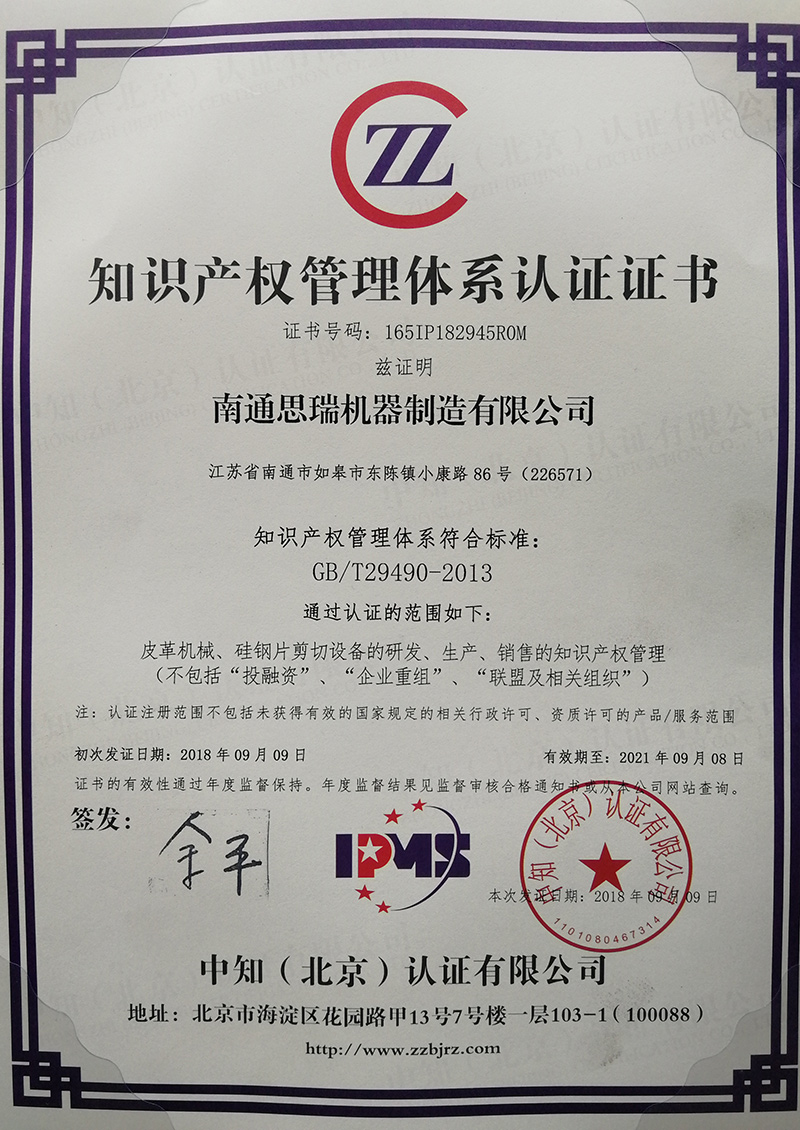 知識(shí)產(chǎn)權(quán)管理體系認(rèn)證證書